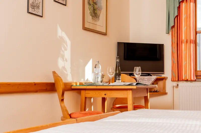 Unsere Zimmer sind mit Dusche / WC, SAT-TV, Radio, Föhn und Kosmetikspiegel ausgestattet. Ein Gästekühlschrank steht auch zur Verfügung. Als Willkommensgeschenk steht in jedem Zimmer eine Flasche Mineralwasser für Sie bereit.